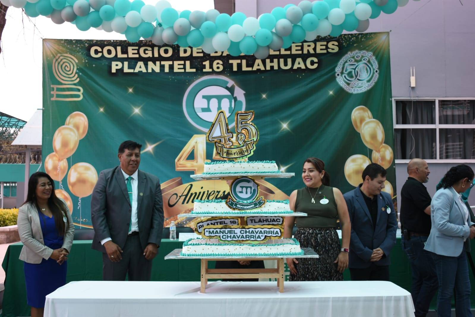 El día de hoy, jueves 14 de septiembre de 2023, se conmemoró el 45 Aniversario del Colegio de Bachilleres 16 Plantel Tláhuac en San Francisco Tlaltenco. La alcaldesa Berenice Hernández Calderón y la Directora General de Desarrollo Social y Bienestar estuvieron presentes en el evento, acompañadas por autoridades escolares del plantel.