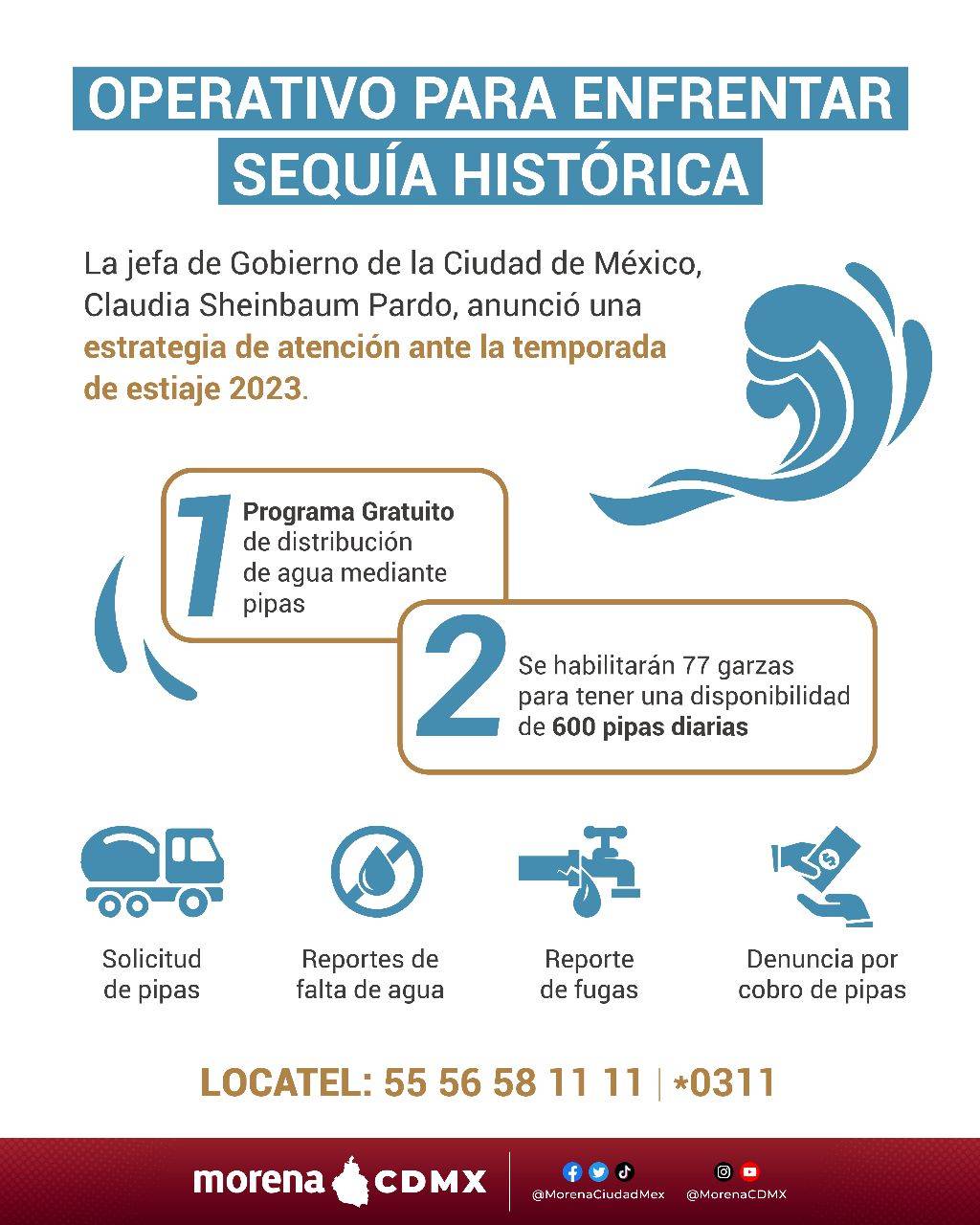Diversas colonias de la Ciudad de México están padeciendo problemas de escasez de agua debido a la reducción en el suministro del Sistema Cutzamala. Ante esta situación, Morena Ciudad de México hace un llamado a la conciencia y a la acción ciudadana para cuidar el agua, destacando que pequeñas acciones pueden marcar la diferencia, como el lavado de automóviles y patios con una sola cubeta, cerrar la llave del agua mientras se enjabonan las manos y reutilizar el agua en el sanitario.