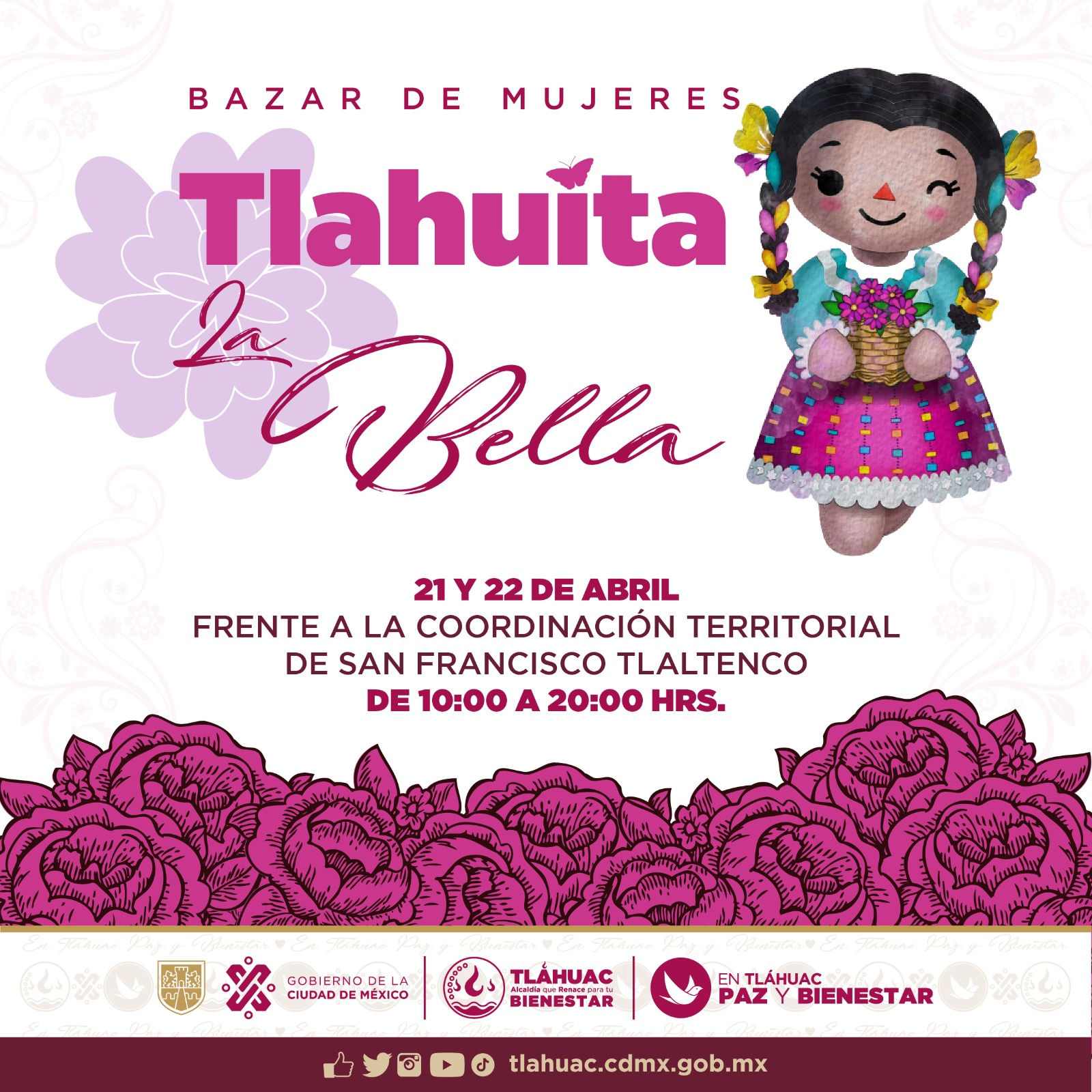 El bazar se llevará a cabo frente a la Coordinación Territorial de San Francisco Tlaltenco, y estará abierto al público de 10:00 a 20:00 hrs. Este es el lugar perfecto para apoyar a los negocios locales y descubrir nuevos productos hechos a mano. Además, los visitantes podrán conocer a las mujeres detrás de estos negocios y aprender más sobre sus historias y trayectorias empresariales.