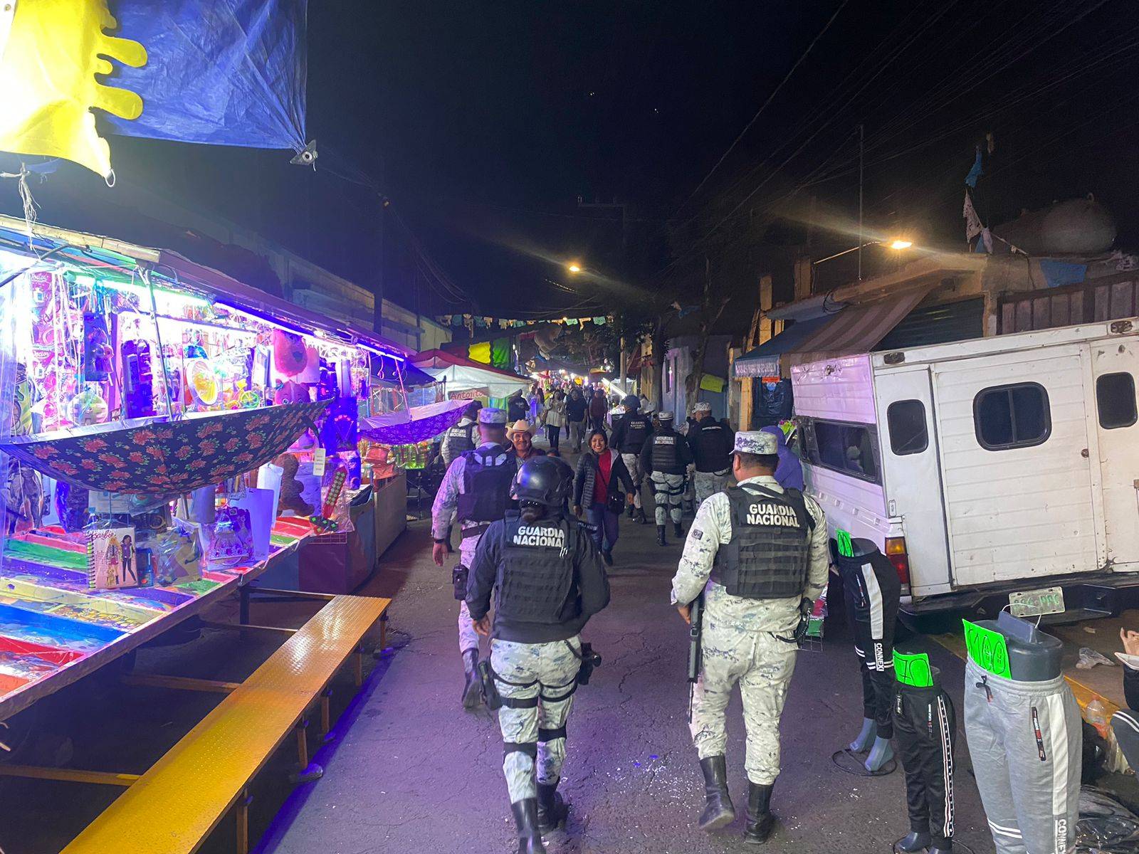 Encargada de la seguridad pública de la federación y de apoyar en tareas de resguardo a las demás corporaciones en las entidades y municipios, la Guardia Nacional, recorre las calles de Tláhuac para acercarse a los civiles y conocer sus necesidades en materia de seguridad.