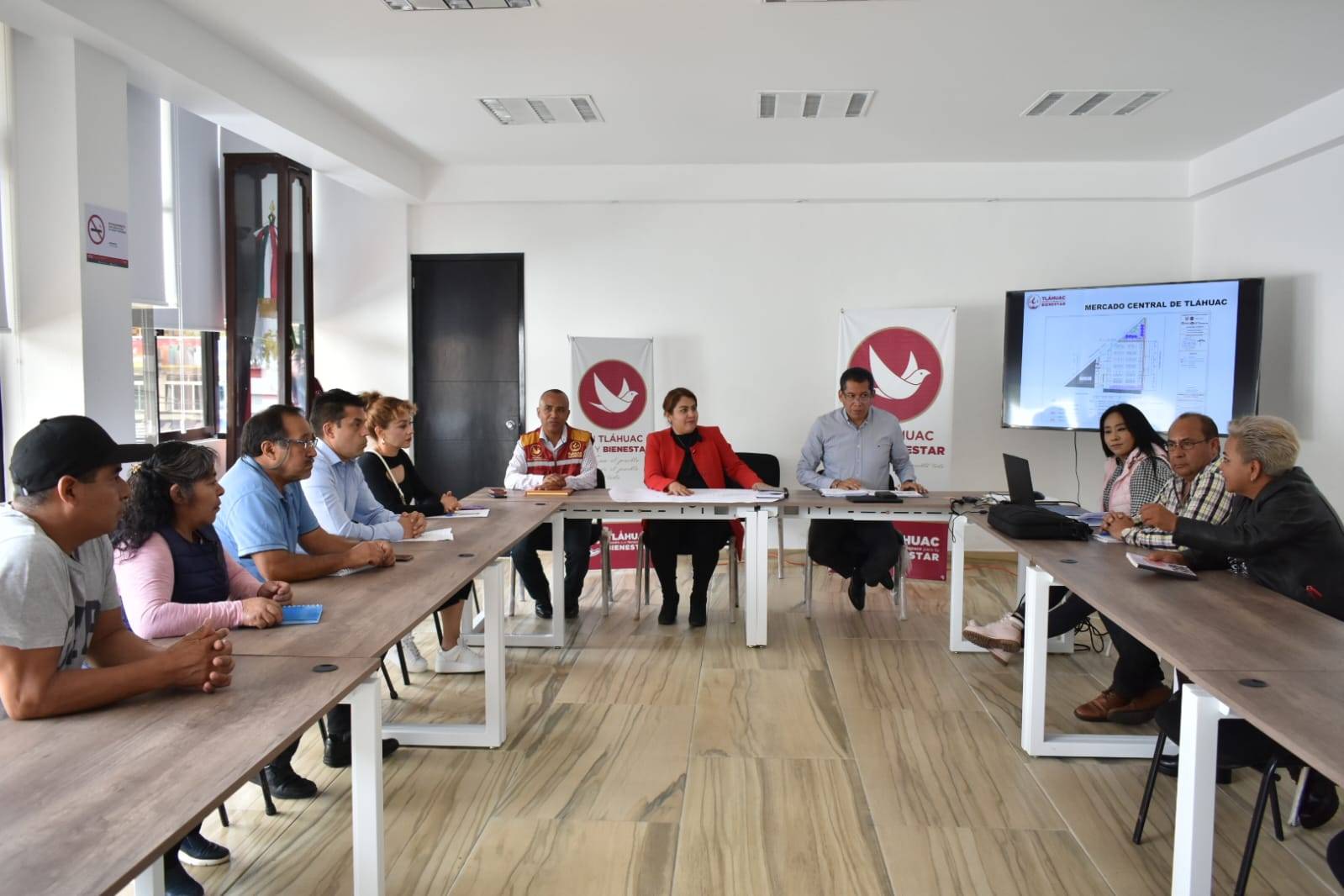La alcaldesa Berenice Hernández Calderón, junto con el Director General de Obras y el Director General de Gobierno y Asuntos Jurídicos, recibieron a los representantes del Mercado Central de Tláhuac en una importante reunión.